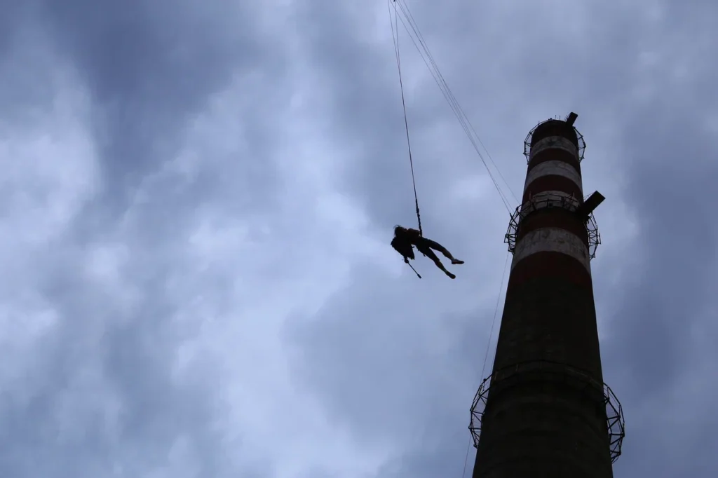 Jesus на высоченной индустриальной трубе — 💥мощно и очень зрелищно. За этим образом — многолетний опыт и обширная география прыжков. 🗺️32 объекта за спиной (или на спине), где самый высокий из них — Ахмет-Кая, 230 метров.